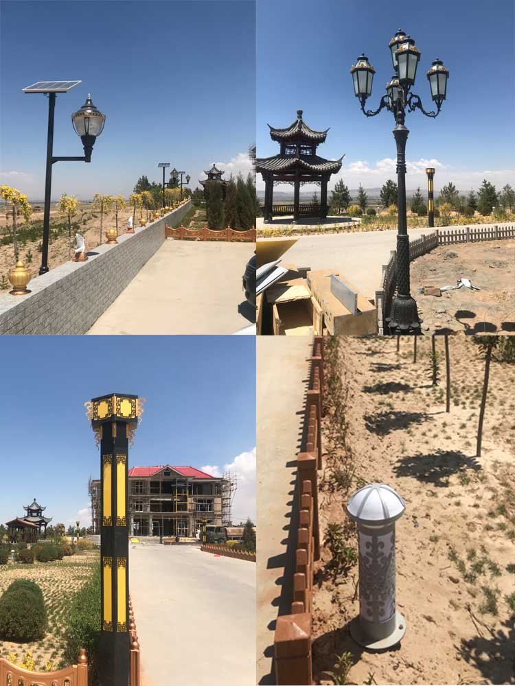 寧夏吳忠市同心縣景觀燈、庭院燈、草坪燈系列項(xiàng)目,是我公司與2018年5月完成的具有當(dāng)?shù)仫L(fēng)格的特色燈具,我們提供給客戶的這批產(chǎn)品都是都是根據(jù)客戶的需求,安裝公司圖冊(cè)進(jìn)行生產(chǎn)的,每款燈都有特色,全部安裝的是市電庭院燈、景觀燈、草坪燈。