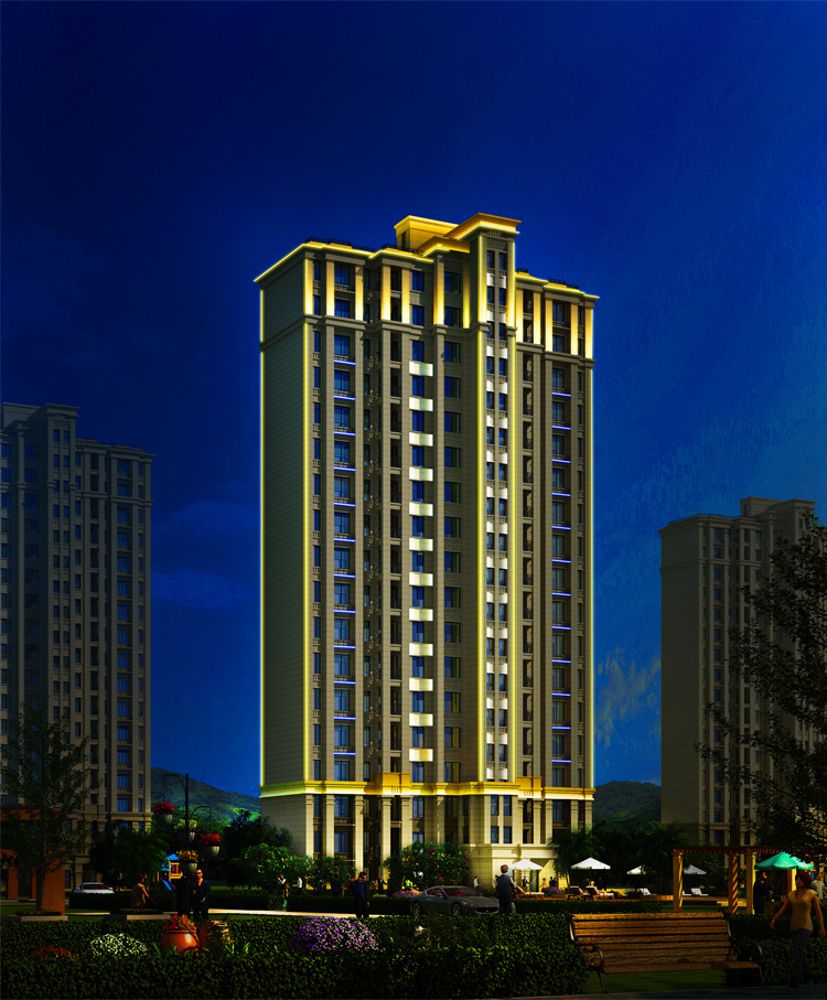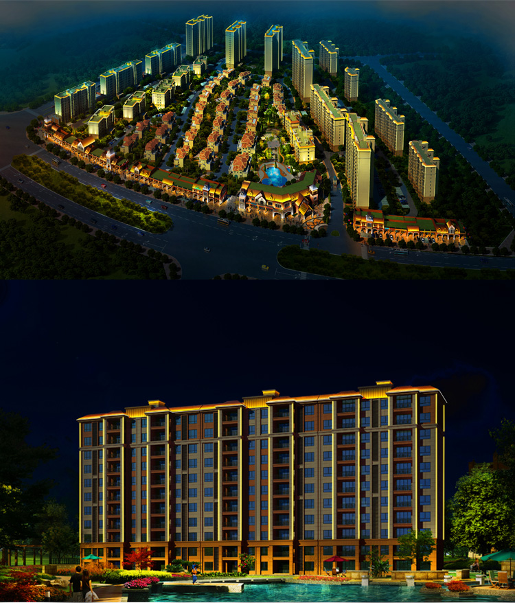 簡介—— 碧桂園小區建筑泛光照明,建筑輪廓照明和局部重點照明進行建筑環境景觀的在塑造,設計中舍棄了景觀中繁瑣細節的表現,將較直觀的景觀以大氣的燈光渲染出來,營造大氣的燈光氛圍,以節能而質樸的燈光為市民營造一個優美高雅的夜間環境,為韓城夜色添了一道亮麗風景。打造出綠色的主題思想。