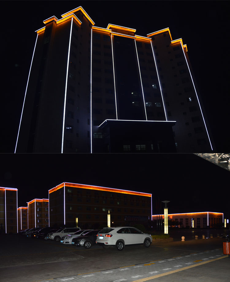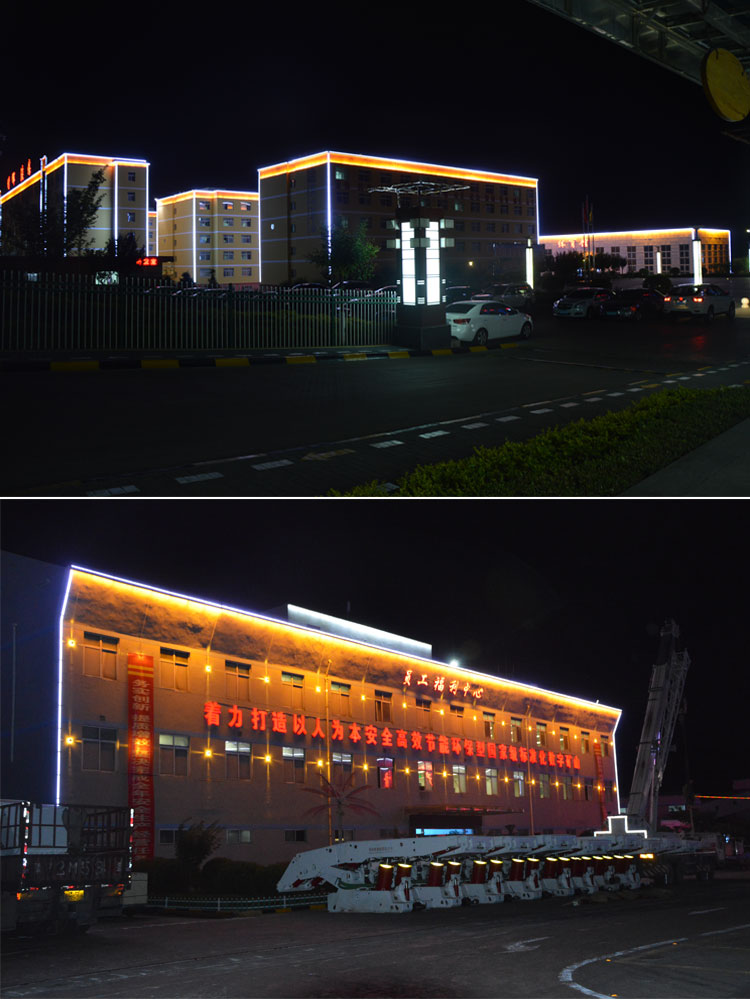 銅川建新煤化是我公司承接的廠區(qū)亮化工程之一,該項目整體從設計到施工,全程有我公司承擔負責,設計根據(jù)甲方的要求,采用簡潔明了的線條勾勒輪廓和打亮為主。在廠區(qū)主要的辦公樓、餐廳、員工活動中心、員工福利中心、員工宿舍樓等員工主要活動的場所樓進行重點亮化。
